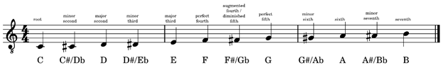 Figure 2: Chromatic Scale 12-tones of western music scales starting on C (key of C)