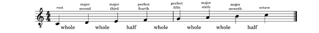 Figure 3: Major diatonic scale - Key of C notes: C-D-E-F-G-A-B-C (no sharps or flats) the chromatic scale above can be referred to visualize the steps used to achieve this scale remember 1 whole=2 half steps.